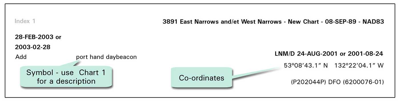 Chart corrections for paper and digital charts and publications are issued through Notices to Mariners by the Canadian Coast Guard. These notices also contain updates to CHS and Canadian Coast Guard publications, and more.