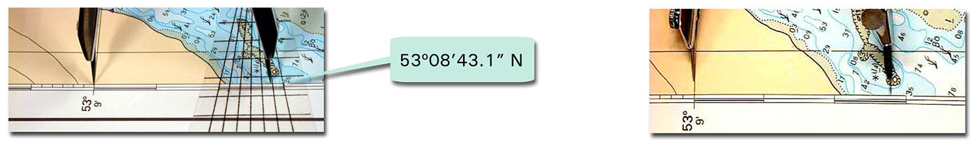 Plot the latitude co-ordinate on the chart border using dividers. Mark this distance on the chart.