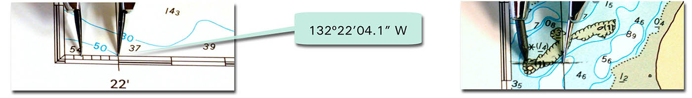 Plot the longitude co-ordinate on the chart border using dividers. Mark this distance on the chart.