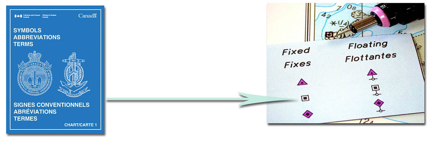 Use Chart 1 Symbols, Abbreviations and Terms Used on Charts to help find the symbol of the required change. Add the symbol at the intersection of latitude and longitude.